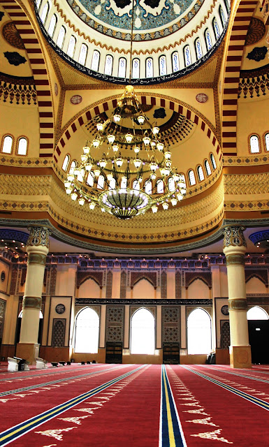 I remember going to this mosque last ramadan, just couple of days after it's opening. It was in news because after Grand Jumeirah mosque this is the only mosque in Dubai that allows access to the non-muslims too. It was also in news because apparently about 80 million dirhams have been spent on this mosque. I was amazed the first time I visited this mosque for taraweeh, oh the Imam! They had gotten Abu Bakr Ash Shatri for the taraweeh and his voice is blessed, mashallah! I miss Ramadan now! Anyway, so I made a vow to come again to this mosque and when the opportunity presented itself I couldn't decline. I was extremely tired that day after work so the photos aren't extremely amazing but they do give you an idea about the mosque. For a better view, click on the pictures.